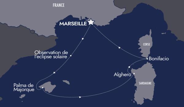 Partez à bord du Renaissance pour une croisière inédite entre merveilles méditerranéennes et phénomène céleste exceptionnel. Lors de la navigation vers les Baléares, vivez un moment rare : l’observation d’une éclipse solaire depuis les ponts du navire, au cœur de la mer.