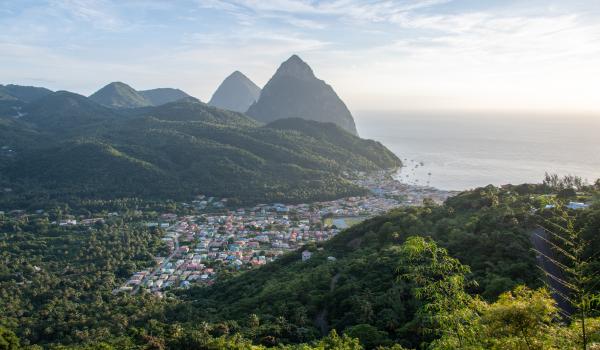 Départ matinal pour Sainte Lucie. Cette grande île d’origine volcanique de 620km2, est toute en relief et recouverte d’une végétation luxuriante. Elle s’annonce de loin grâce à ses fameux Deux Pitons, anciens dômes de lave, situés sur sa côte occidentale et tombant à pic dans la mer.